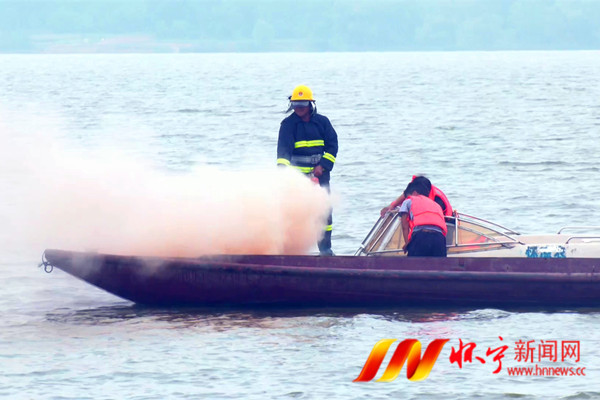 此次演練模擬了漁船失火和漁民落水兩種突發(fā)情況。隨著蔣澤球宣布演練開始,模擬漁船失火的場景拉開帷幕。只見漁船在湖面上冒出滾滾濃煙,火勢迅速蔓延,漁民在無法撲滅大火的情況下立即向縣水產(chǎn)中心報告。接到報告后,縣水產(chǎn)中心及時啟動應(yīng)急預(yù)案,立即組織應(yīng)急救援隊前往事發(fā)現(xiàn)場開展滅火救援。救援隊員熟練地操作滅火器,迅速控制住了火勢,成功營救船上人員。