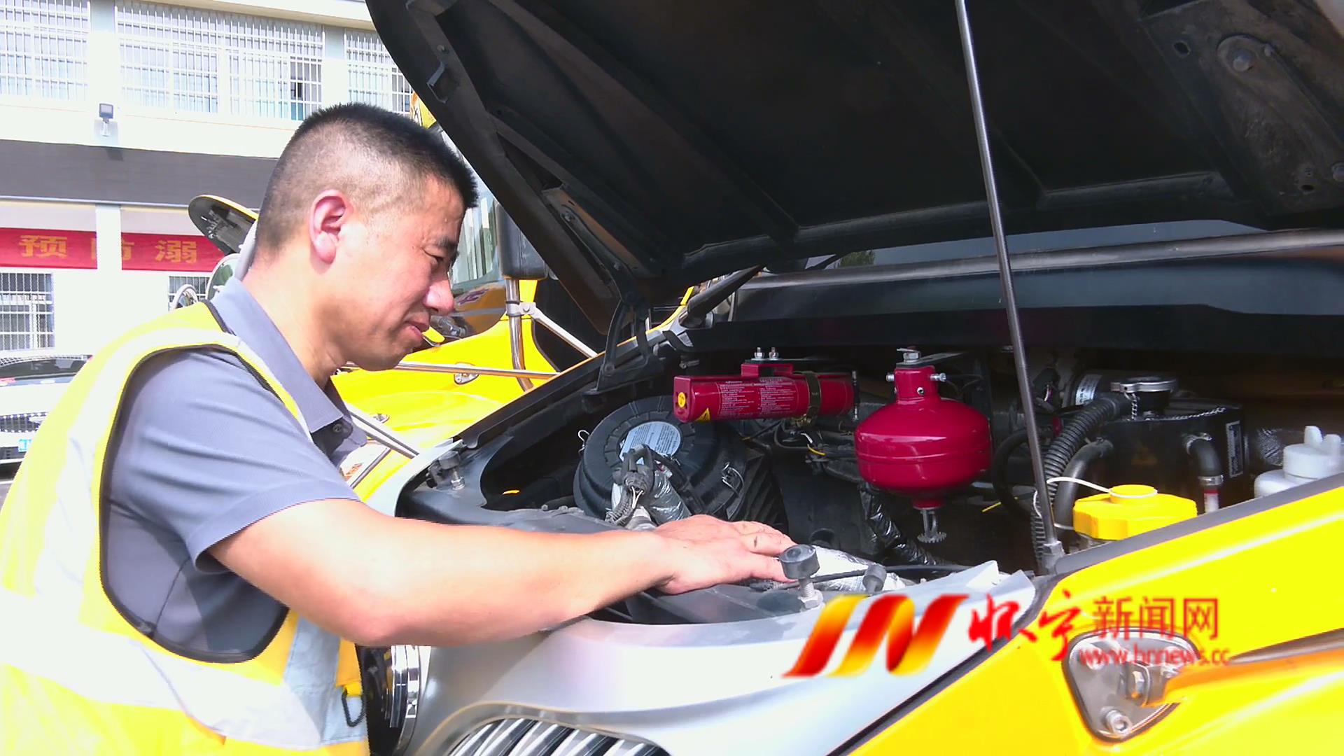 在懷寧縣行千里校車公司的黃墩車隊(duì),一場(chǎng)細(xì)致入微的校車“全面體檢”正有序開展。駕駛員對(duì)駕駛艙儀表、操控系統(tǒng)及車輛輪胎進(jìn)行逐一核查,照管員則對(duì)車內(nèi)急救箱、滅火器、安全錘等應(yīng)急設(shè)備進(jìn)行檢查,確保符合安全標(biāo)準(zhǔn)。