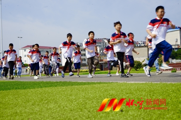 6月3日,月山鎮中心學校,學生在課間跑操。我縣引導各中小學校全面開展課間跑、跳繩、球類等豐富多樣的體育活動,助力學生健康成長。檀志揚 朱敏麗 攝