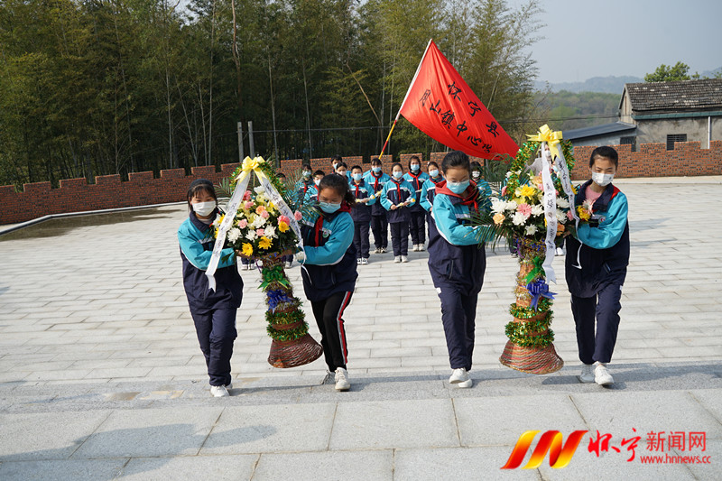 ?。▓D為小學生向楊兆成烈士敬獻花籃)