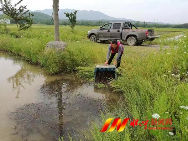 月山鎮:“水上春耕”正當時 稻田投放蝦苗忙