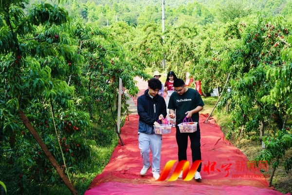 5月17日,游客在平山鎮狀元村家庭農場采摘油桃,盡情地享受著采摘的樂趣。平山鎮大段村村民陳真承包家門口近200畝荒山種植油桃、蟠桃、黃桃等品種,使昔日荒山變成了“金山銀山”,碩果盈枝的桃園不僅鼓起了村民的腰包,也成了當地及周邊市民踏青游玩的好去處。 檀志揚 操振東 攝