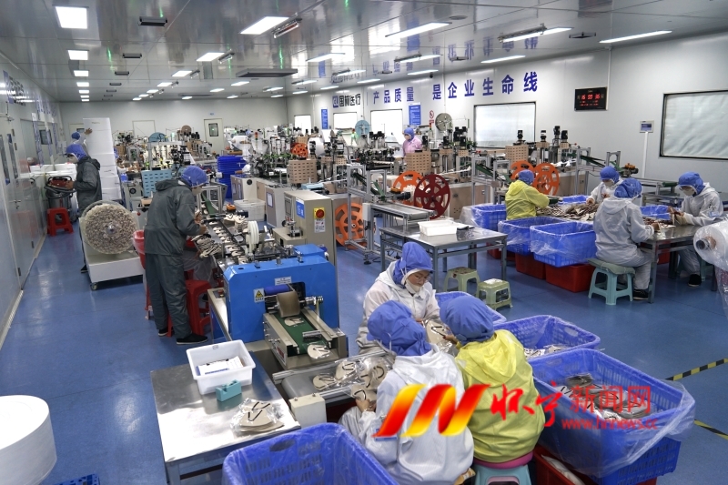 本網(wǎng)訊 2月18日,走進金拱鎮(zhèn)安徽國林醫(yī)療科技有限公司,無塵生產(chǎn)車間內(nèi)口罩生產(chǎn)線飛速運轉(zhuǎn)不停,上百名身穿無菌服的工作人員配合著機器熟練地進行挑揀、包裝等流水線操作。