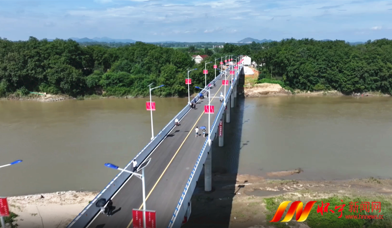 被當地人稱為“勝天橋”的簡易橋,每逢汛期,河水漫橋,嚴重影響了兩岸上萬名群眾的生產生活。2024年,該鎮積極爭取近5000萬元項目資金,對勝天橋實施危橋改造。同年10月,一座長307米、寬12米的“安全橋”“民心橋”順利建成。